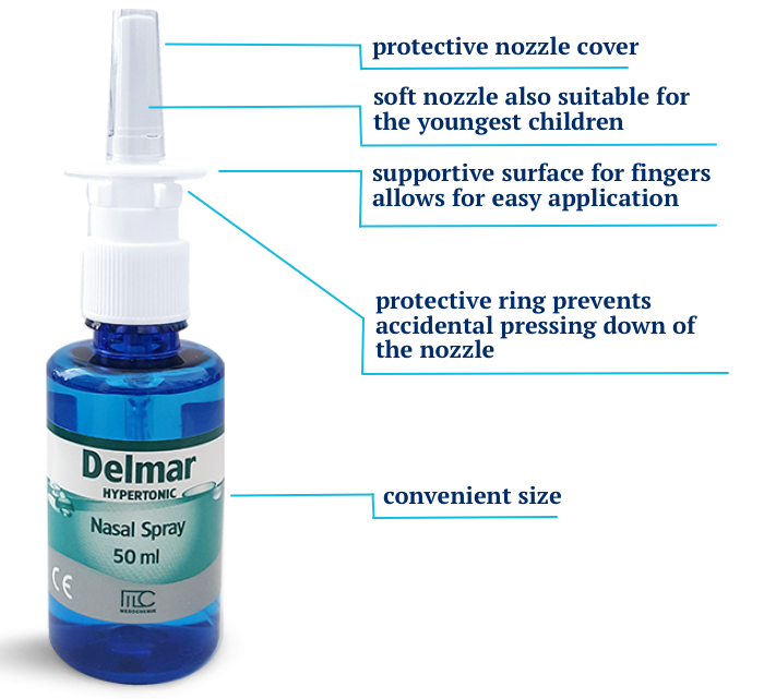 Delmar Hypertonic nasal spray solution is intended for people who have a blocked nose due to Sinusitis or allergic rhinitis and experience difficulty in breathing